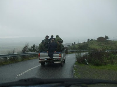 A deslocação para a mancha...mesmo com chuva a boa disposição!
